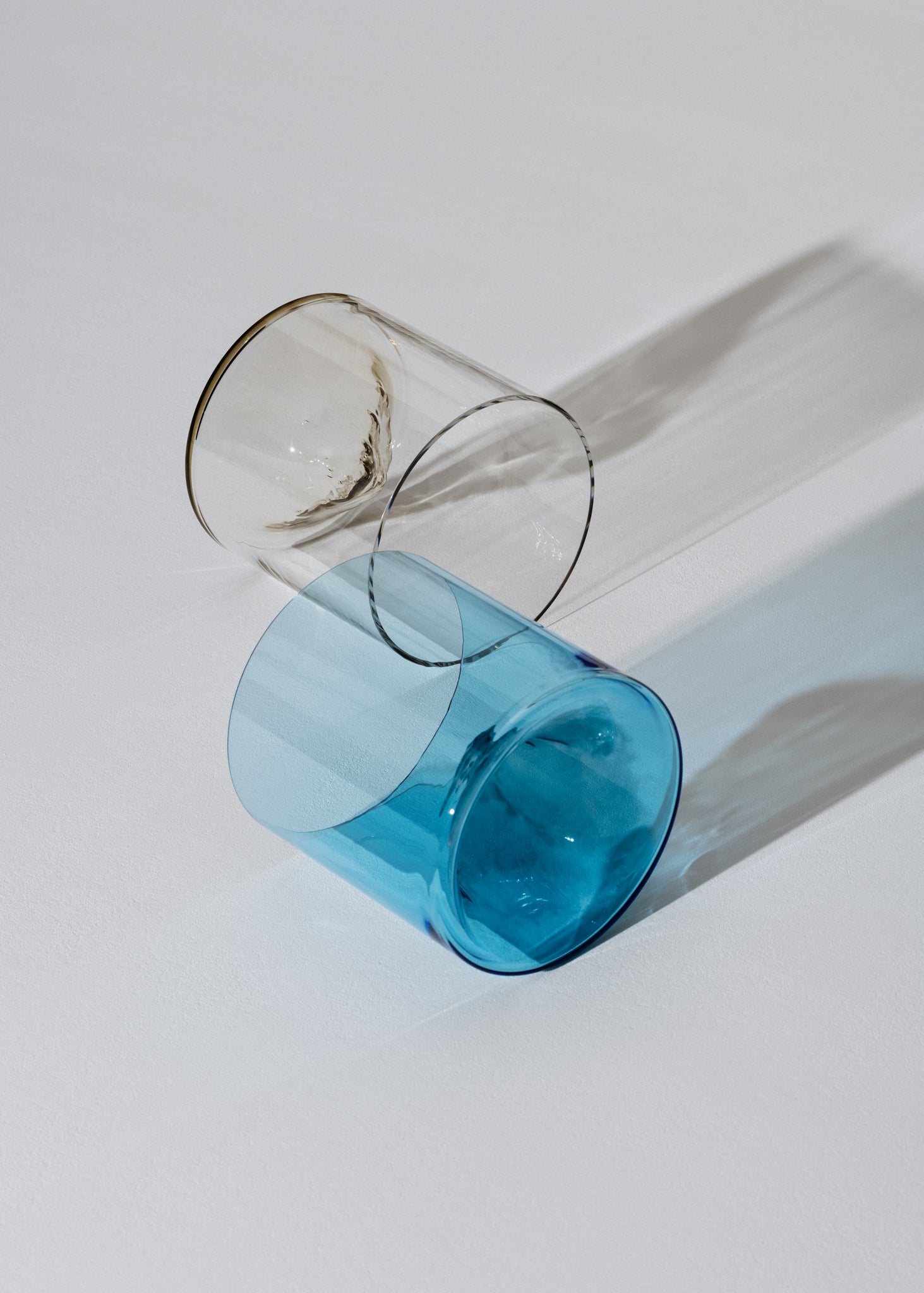 Mit dem Produkt wollte ich zum einen die traditionelle Arbeitsweise der Glashütte Meisenthal aufgreifen, dem Glasblasen in eine Form. Gleichzeitig wollte ich natürliche Formen aus der Umgebung verwenden. Die Landschaft Meisenthals ist geprägt durch die Gebirgsregion der Nordvogesen. Als Symbol für die Berge nahm ich einen Stein, auf den die zylindrische Form gepresst wird.